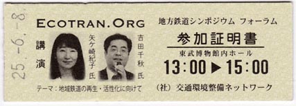 フォーラム参加者には、記念の特製硬券参加証明書を配布いたしました。