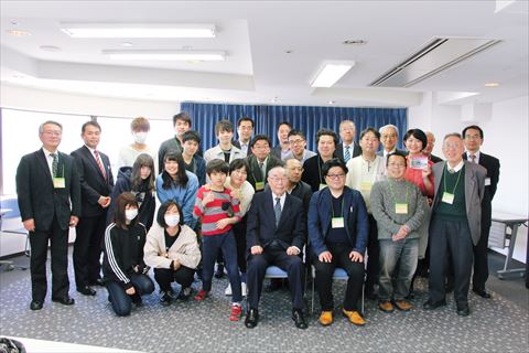 | (講演2)田中 人様 | 講演会場風景 | 全員で記念写真を撮りました |