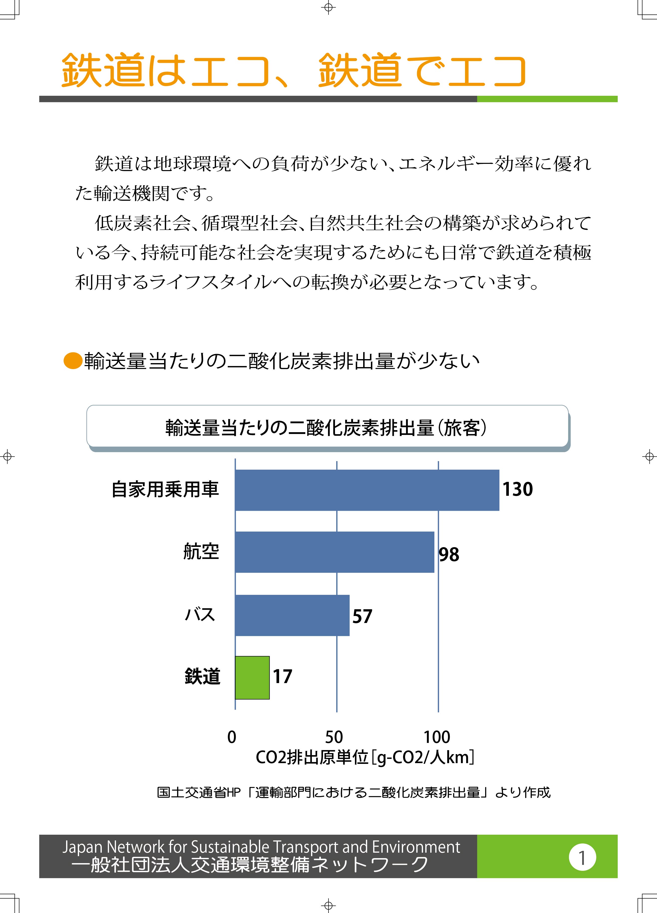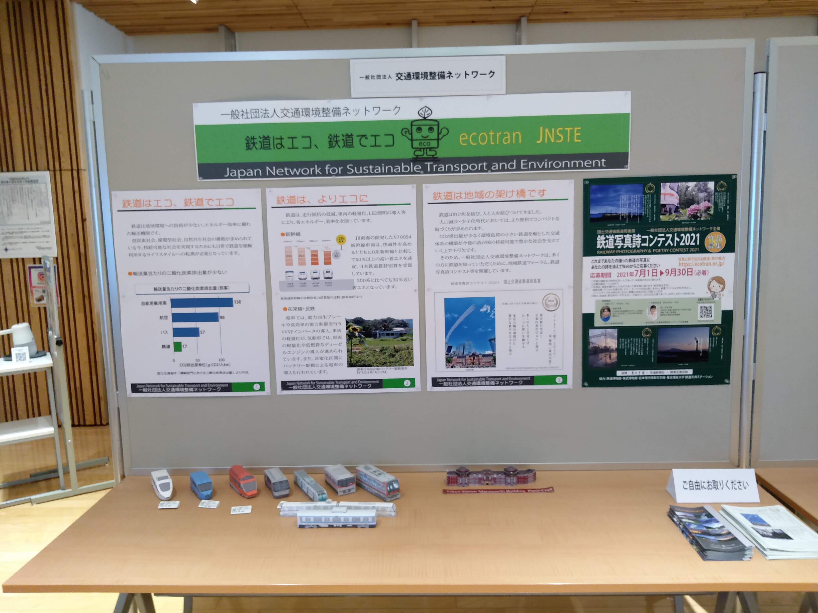 会場内のブースでは、「鉄道はエコ、鉄道でエコ、エコトラン」の標語とともに、環境に対する鉄道の優位性を発信しました。