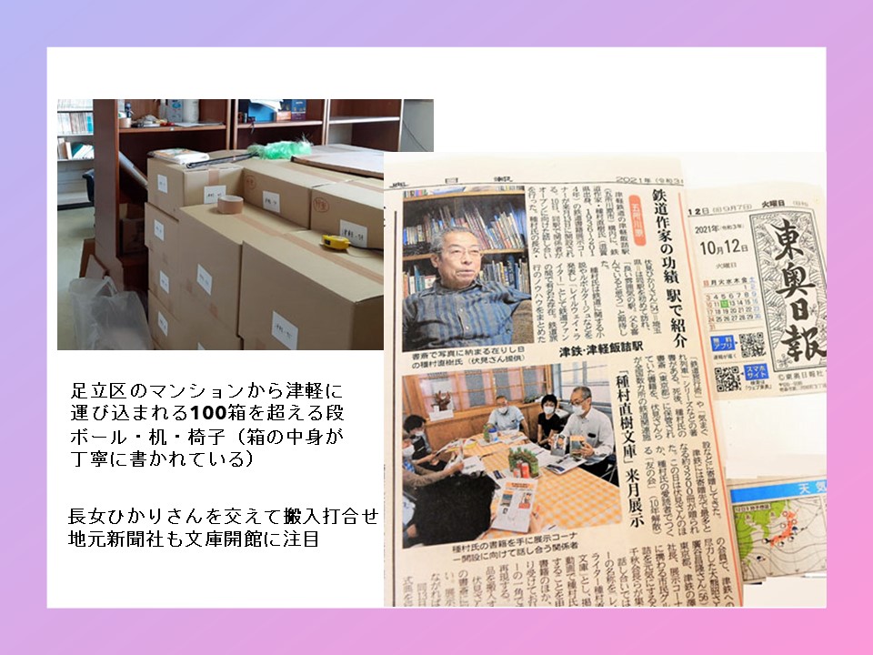 2021年11月、津軽飯詰駅に種村直樹氏の汽車旅文庫を開設しまして7ヶ月が過ぎました。津軽鉄道の新たな魅力となって、沢山の愛読者や鉄道ファンが集う場所、またその方達と地元の人の交流の場ともなっています。