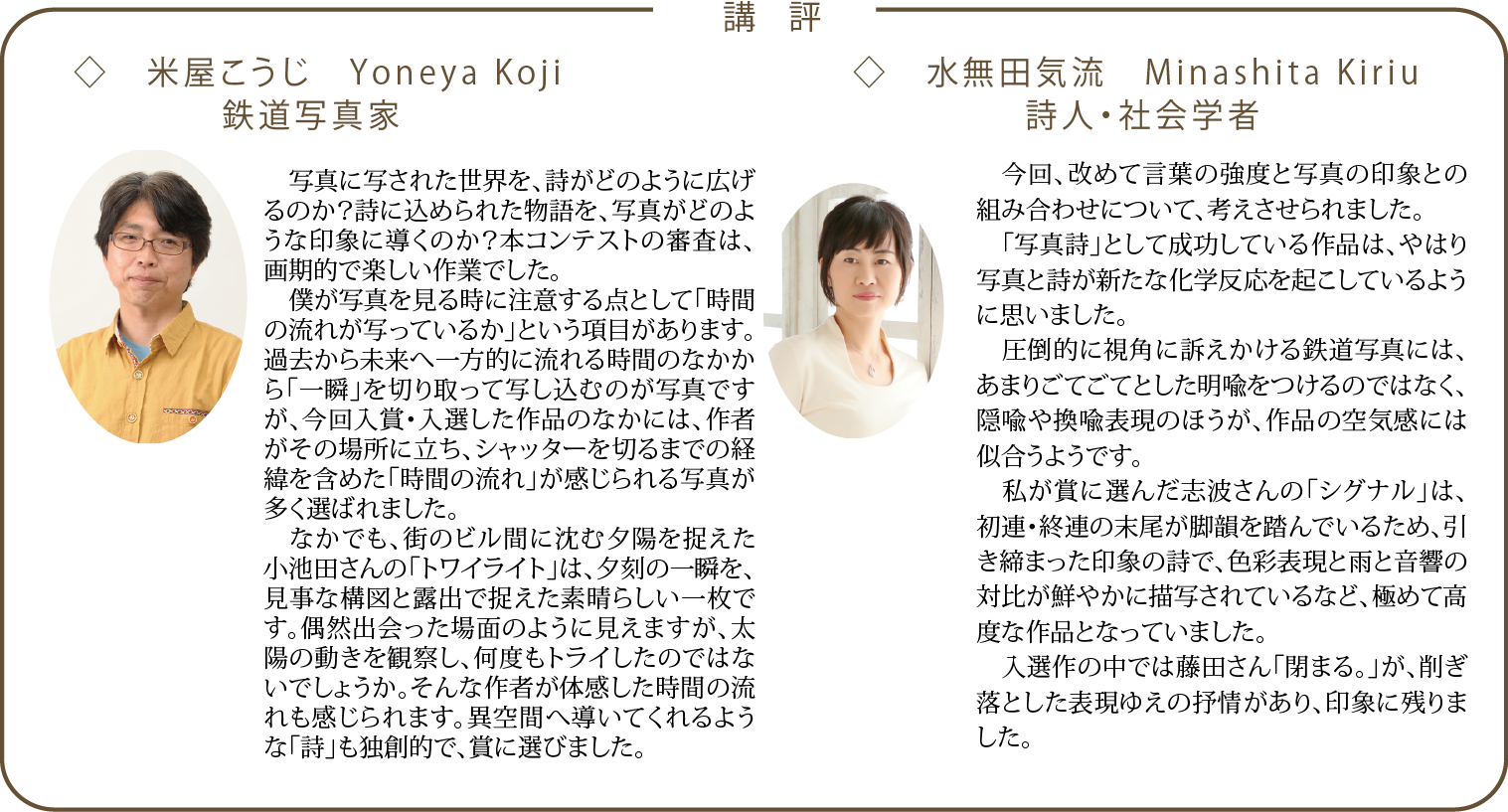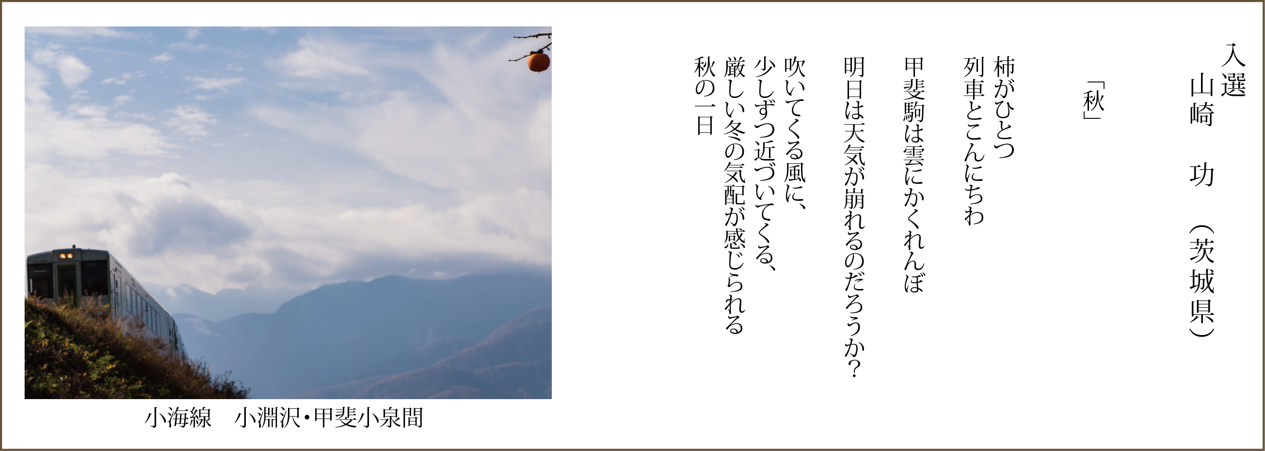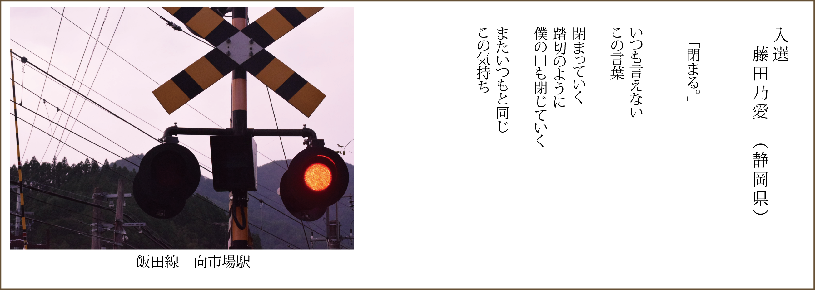 「鉄道写真詩」は、「鉄道写真」に「詩」を組み合わせて鉄道の持つ魅力を表現するものです。二つが組み合わさることで、表現がさらに豊かに広がることを期待して、平成29年7月1日より3ヶ月間作品の募集を行いました。